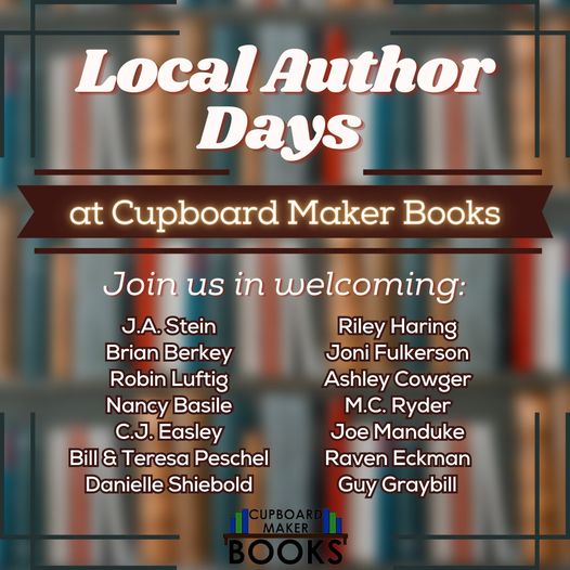 May 1, 2023April 5, 2023 by jas Local Author Days at Cupboard Maker Bookstore this Weekend You can’t miss it… look for the building painted to look like books! Share this: Click to share on X (Opens in new window) X Click to share on Facebook (Opens in new window) Facebook Like Loading... Related